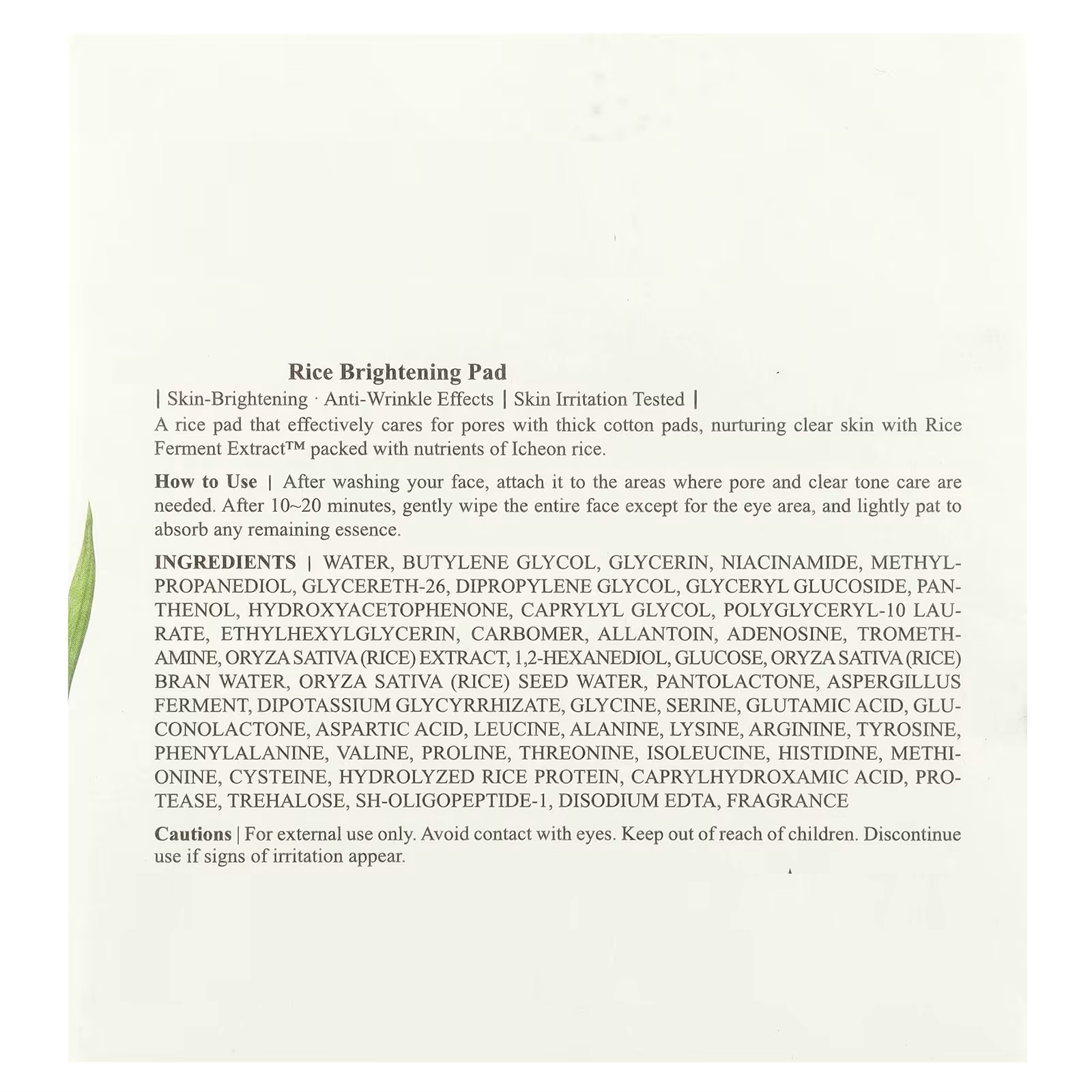 A pre-soaked rice facial pad designed to be placed on areas of concern, helping to provide a hydrated and refreshed appearance to the skin.